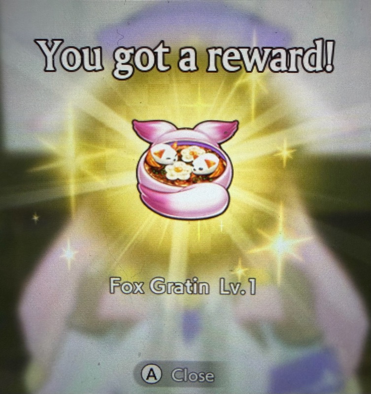 One can miss exquisite details like this one. I made this dish before and yet, today raising Hina to Level 13, she gave me one as a gift. It has tiny baby foxes clustered in a pink bowl shaped like a fox.