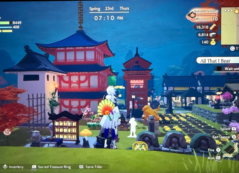 I always am so busy writing everything down, making certain I do my chores and interact with others that I seldom visit the areas I designed in every village to spend even a brief moment enjoying their beauty.