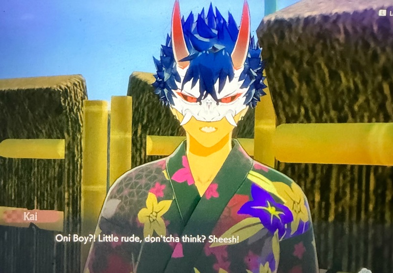 This interchange reminds me of one he has with Kotaro when they fight side by side in your party. Kotaro says something admiringly about Kai’s prowess as a warrior, and Kai responds with something like: ‘You are fighting here as well, little dude!’