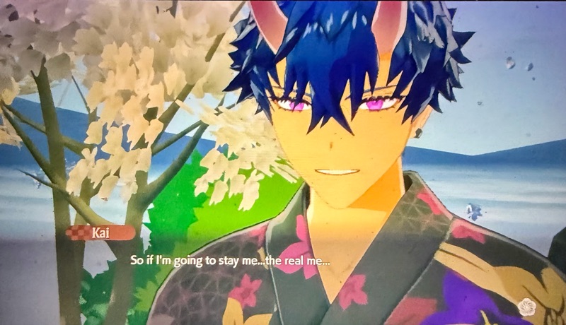 If you marry him, you give Kai a real home. If you have children with him, you give him a real family. Many of his conversations at the shrine after marriage show how central family life is to him. When he speaks of being out by himself, he confesses he thinks of you and cannot wait to get home to be with you again. ‘Devil May Care’ is a front for a being who is completely devoted to you, even if you not court or marry him. Devotion is fundamental to him. Once he begins to interact with the world again, he demonstrates how much he is devoted to his people and devoted to Azuma. Although their relationship is one expressed more by insulting banter then anything else, he genuinely cares about Kurama. He cannot understand how Kurama can shut himself in a dark place to spend most of his time in a gaming world of fantasy. This is the result of Kai’s own experience in the Underworld, deprived of contact with the elements of Nature. He speaks often of the wind, the sunlight, clouds and rain.