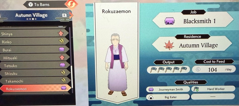 I realise he must be one of my 30 employees and wonder about his job. I go to the Villager menu to discover that, although he is qualified to be a Journeyman Smith, he somehow is a Miner now. I’m looking through the list to see who took his blacksmith job. To my surprise, no one works now at the Smithy!