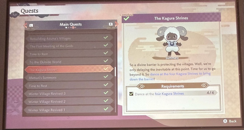1. I started a new game with a protagonist named Cybele. As always, I am pulled towards Kai and each time I play through the story, I appreciate him more. His initial appearance as an irresponsible drunkard is so very deceptive. He actually lacks the power to act until the four seasonal gods of Azuma are restored to power. He is a refugee from the Underworld but Ura cannot be deposed from power until you have activated the four seasonal Kagura shrines AND found all the Astral Shrines. Then and only then can he regain his divinity and lead you through the Underworld before helping you find the Goddess of Heaven, his divine counterpart.