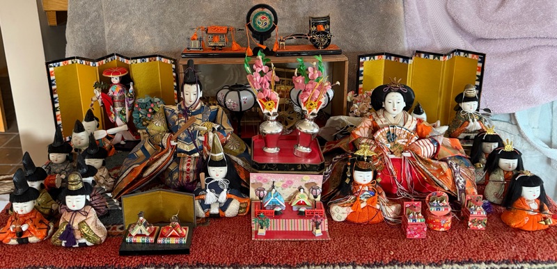 One of my own favourite festivals so sharing some Hina displays here. Traditionally they depict the Emperor and Empress. They can be accompanied by members of the court and traditional objects including carts and palaquins