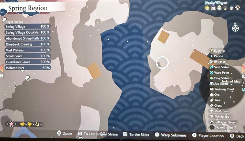 There are a number of places in the seasonal wilds of Azuma that cannot be reached without Fubuki’s Parasol. The first of these is the Isolated Islet in the Spring Highlands. If you go to the Save Point at the Vast Plateau and move eastward to find a wooden platform, you can glide to the Isolated Islet.